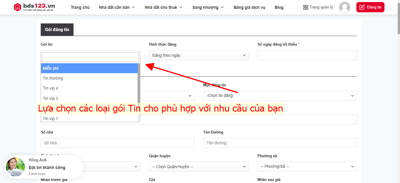 Chào bạn, sau đây là hướng dẫn đăng tin bán hoặc cho thuê trên website bds123.vn.